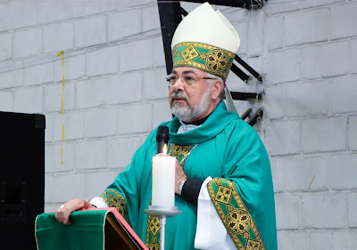 Dom Joaquim, em sua homilia, nos fez refletir mostrando que onde Deus se faz presente está a luz, o amor e a possibilidade de fazer os outros felizes. Essa presença é feita na Mesa da Palavra, onde firmamos nossa vida na rocha, e na mesa da Eucaristia, que Cristo se oferece para nos dar vida em plenitude. Com a sua presença Ele vem incendiar nosso coração e nossa vida de amor e entusiasmo.